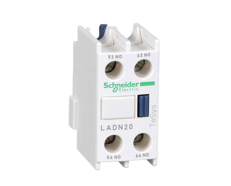 O LADN20 é um bloco de contatos auxiliares da Schneider Electric para contatores TeSys D e TeSys F. Ele fornece contatos instantâneos 2NO classificados até 10A 690V AC. Fácil de montar na frente por clip-On, ele garante alta confiabilidade e durabilidade. Disponível em todo o mundo, é certificada para vários padrões (IEC, UL, CSA, CCC, EAC, Marinha) e compatível com Green Premium (RoHs / Reach).. Bloco complementar com 2 contatos auxiliares mecanicamente ligados, com operação instantânea.