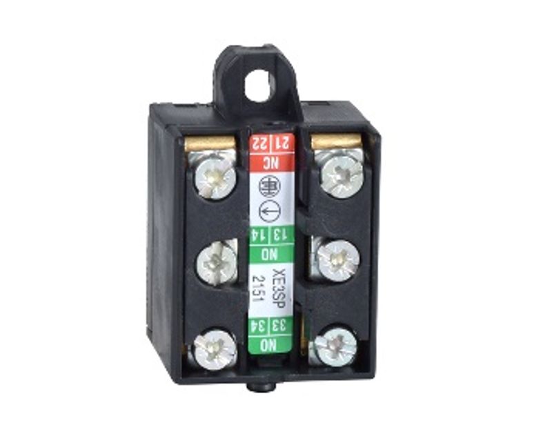 Bloco de contato para chaves Schneider Electric Preventa XCS. Possui dois contatos NA e um contato NF. A Schneider Electric está liderando a transformação digital no mercado de automação industrial. Por meio da arquitetura EcoStruxure e das tecnologias de IIoT, aumentando a lucratividade e a produtividade.