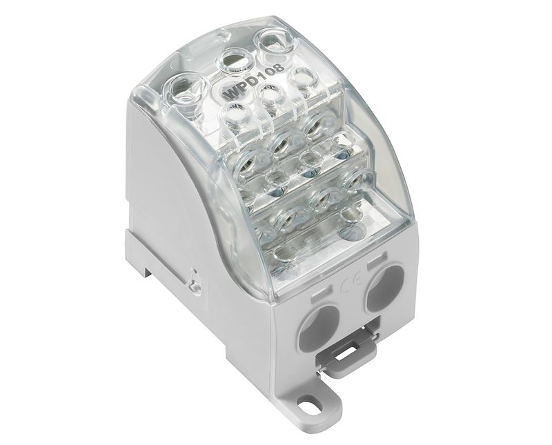 Com uma caixa feita de composto termoplástico resistente e polos de terminação confiáveis e seguros, este bloco de distribuição de corrente é capaz de suportar correntes de até 250A e tensão máxima de 1100V. A sua configuração de 1 polo proporciona maior praticidade e facilidade de instalação.