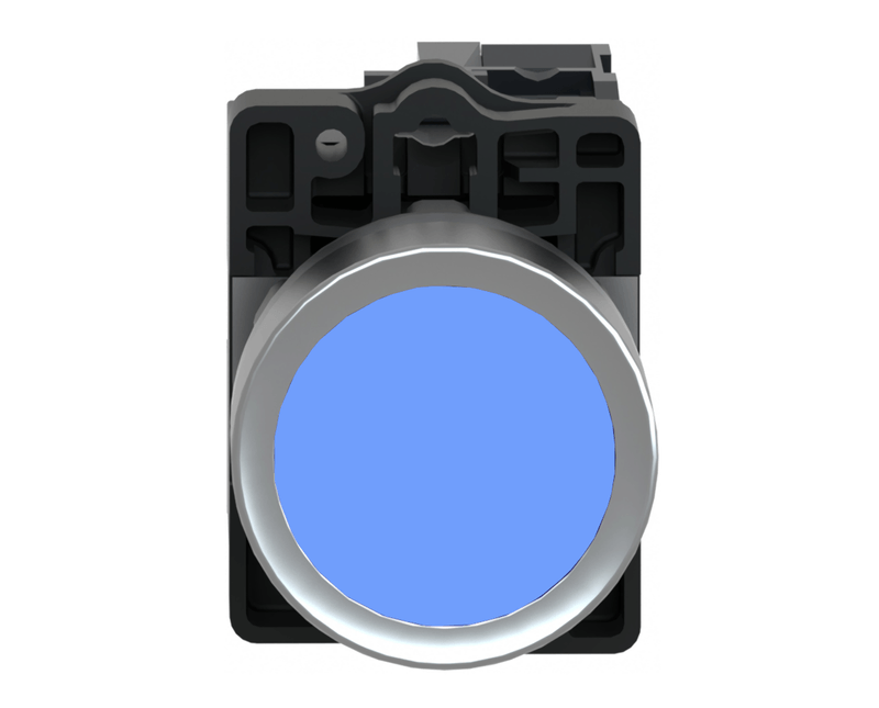 Botão de pressão embutido, LED|Este botão luminoso iluminado com LED integrado fornece uma interface ergonômica e visual para controlar suas máquinas. É facilmente instalado em um recorte de painel padrão de 22 mm de diâmetro e conectado a circuitos de controle com conexões clássicas de fixação por parafuso. Distingue-se visualmente distintamente a uma distância graças à sua cabeça iluminada e cor clara. É resistente a poeira e água, graças ao seu índice de proteção IP65.