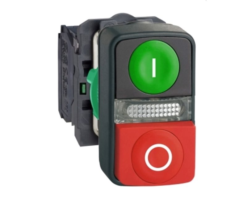 BOTAO COMANDO | TIPO: ILUMINADO | FORMATO: DUPLO | ARO: PLASTICO | COR ARO: PRETA | COR BOTAO: VERDE/VERMELHA | FURACAO: 22MM | TENSAO ALIMENTACAO: 240V | BASE LAMPADA: LED INTEGRADO | CONTATOS: 1NA+1NF | REFERENCIA: XB5AW73731M5