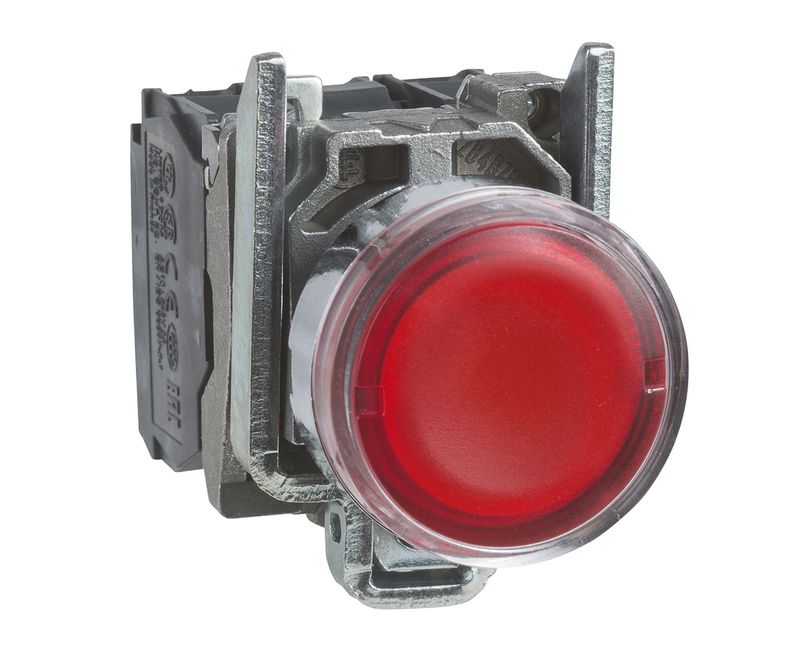 BOTAO COMANDO | TIPO: ILUMINADO | FORMATO: REDONDO | ARO: METALICO | COR ARO: CROMADO | COR BOTAO: VERMELHA | FURACAO: 22MM | TENSAO ALIMENTACAO: 240V | BASE LAMPADA: LED INTEGRADO | CONTATOS: 1NA+1NF | MARCA: SCHNEIDER | REFERENCIA: XB4BW34M5