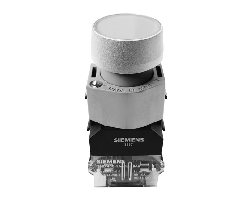 - Cor do botão: Branco, o que facilita a visualização e se integra bem em painéis de controle.