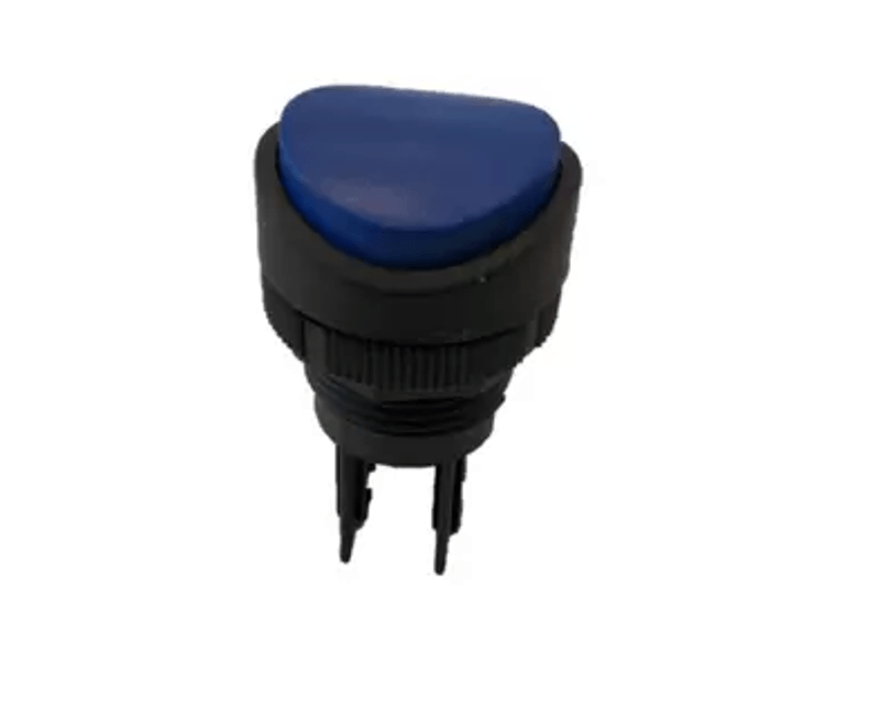Com formato redondo e aro plástico preto, o Botão Redondo Saliente possui um diâmetro de 22mm, facilitando a instalação em diversos tipos de máquinas e equipamentos. A cor azul do botão é destacada, garantindo facilidade de visualização mesmo em ambientes com baixa iluminação.