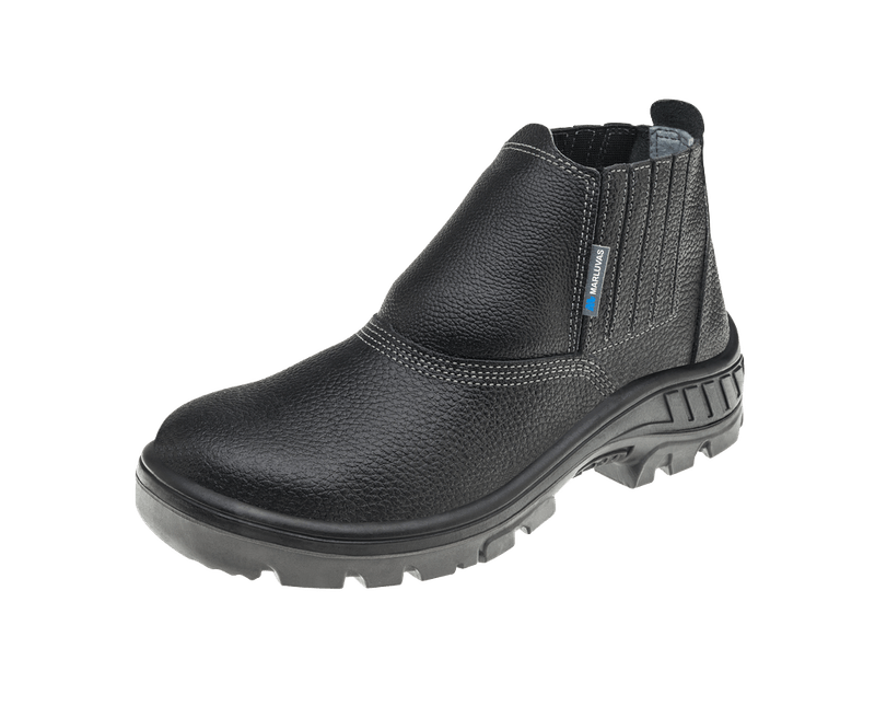 Com fechamento em elástico, é fácil de calçar e proporciona um ajuste perfeito aos pés. Seu solado é de poliuretano bidensidade, o que garante maior estabilidade ao caminhar. A biqueira de aço carbono serve como proteção contra acidentes e impactos, enquanto a palmilha antiperfurante em aço proporciona segurança extra.