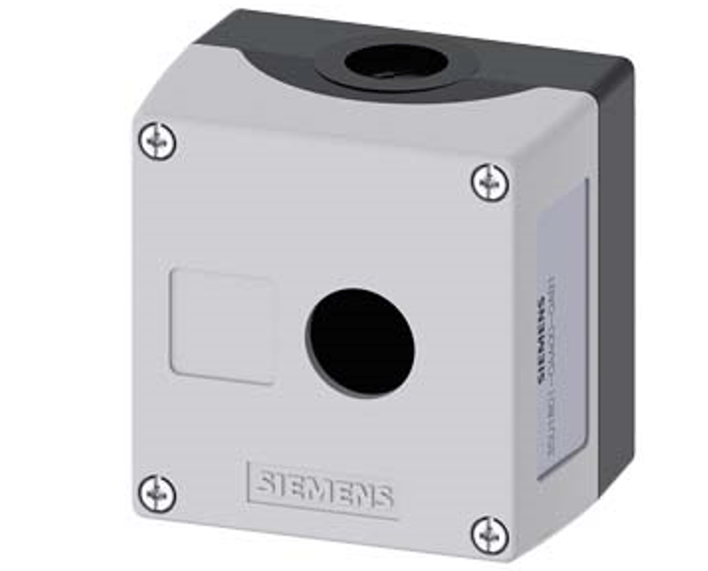 BOTOEIRA COMANDO VAZIA | MATERIAL: PLASTICO ACRILONITRILOBUTADIENO ESTIRENO (ABS) | COR CAIXA: CINZA | COR TAMPA: CINZA ESCURA | QUANTIDADE FUROS: 1 FURO | MEDIDA FURO: 22MM | TAMANHO CAIXA: 85X85X64MM | MARCA: SIEMENS | REFERENCIA: 3SU18010AA000AB1