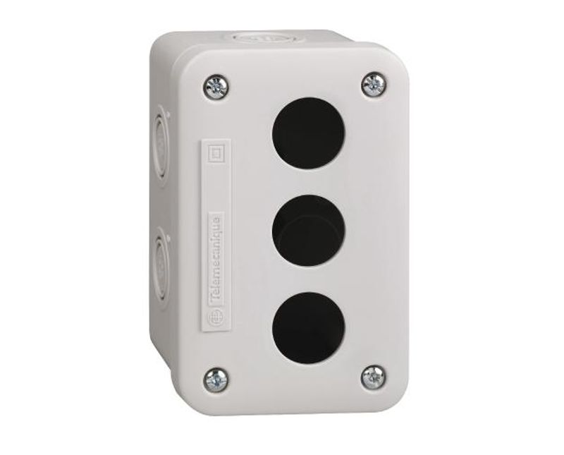 BOTOEIRA COMANDO VAZIA | MATERIAL: PLASTICO | COR CAIXA: CINZA | COR TAMPA: CINZA | QUANTIDADE FUROS: 3 FUROS | MEDIDA FURO: 22MM | MARCA: SCHNEIDER | REFERENCIA: XALE3