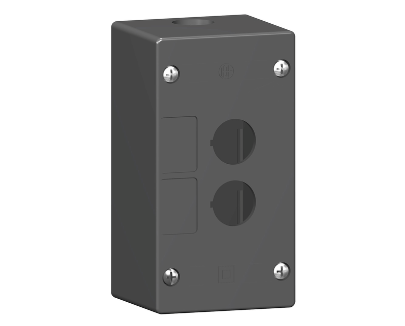 estação de contole vazia, para 2 botões, ideal para unidades de sinalização, possui furo de 22mm e dimensões de 90mmx 72xx xom profundidade de 65mm. A Schneider possui uma grande variedade de produtos para atender completamente a aplcação de seus clientes, tembém atende as principais normas quanto a grau de proteção de seus equipamentos e acessórios. Para o final de vida do produto existe em nosso site um material de como deerá ser tratado e além deste material também pode ser encontrado as certificações do produto.
