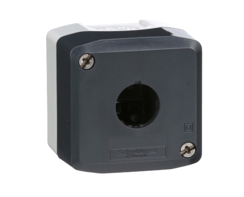 BOTOEIRA COMANDO VAZIA | MATERIAL: PLASTICO | COR CAIXA: CINZA CLARO | COR TAMPA: CINZA ESCURO | GRAU PROTECAO: IP-65 | QUANTIDADE FUROS: 1 FURO | MEDIDA FURO: 22 MM | MEDIDA ENTRADA: 13,5 | TIPO ROSCA: PG | TAMANHO CAIXA: 53X68X68 MM | MARCA: SCHNEIDER| REF: XALD01 - Essa estação de controle vazia cinza escuro de 1 corte permite que os construtores de máquinas personalizem suas máquinas, adicionando facilmente quaisquer unidades de funcionalidade de controle e sinalização no gabinete, de acordo com a operação necessária. Ele é projetado para máquinas de produção simples e em massa, têxteis, embalagens, manipulação de pequenos sistemas de elevação, controle de portas de garagem, persianas, extração de fumaça. É compatível com os botões de pressão, interruptores e luzes piloto da gama Harmony XB5. É resistente a impactos, resistente a poeira, resistente à água e à vibração graças à sua IP66 / IP67 / IP69 / IP69K, tornando-a ideal para operação em ambientes agressivos. - Gabinete resistente a impactos e manchas para uma aparência sustentada, apesar das condições de uso difíceis