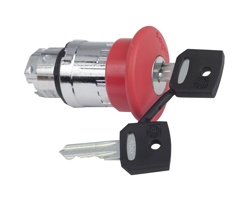 CABECOTE COMUTADOR COMANDO | TIPO: BOTAO EMERGENCIA | FORMATO: COGUMELO | ACIONAMENTO: CHAVE | COR: VERMELHA | MARCA: SCHNEIDER| REF: ZB4BS944