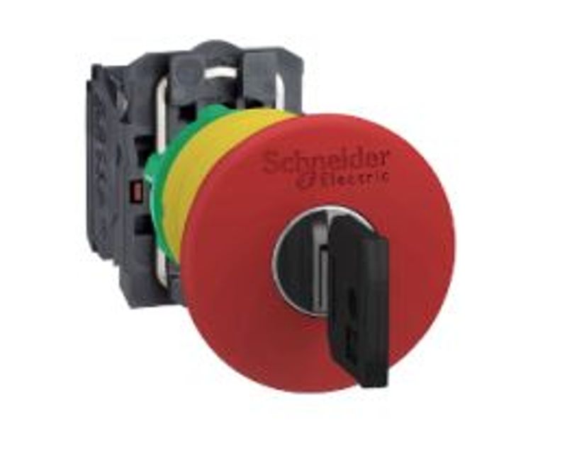 BOTAO COMANDO | FORMATO: COGUMELO 40 MM COM CHAVE | ARO: PLASTICO | COR ARO: PRETO | COR BOTAO: VERMELHO | FURACAO: 22MM | CONTATOS: 1NA+1NF| REF: XB5AS9445
