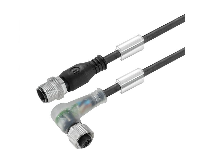 O cabo automação tem um design exclusivo, com conectores M12 e dois ângulos de 90 graus, proporcionando maior flexibilidade na conexão e evitando desconexões acidentais. É um cabo prático, fácil de instalar e muito resistente, com material do corpo pureorethano e anel roscado em aço de alta qualidade, garantindo uma proteção IP65-68, resistente a líquidos e poeira, e uma longa vida útil.