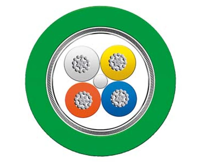 Filme laminado de alumínio sobreposto, envolto por um entrançamento blindado de fios de cobre estanhados