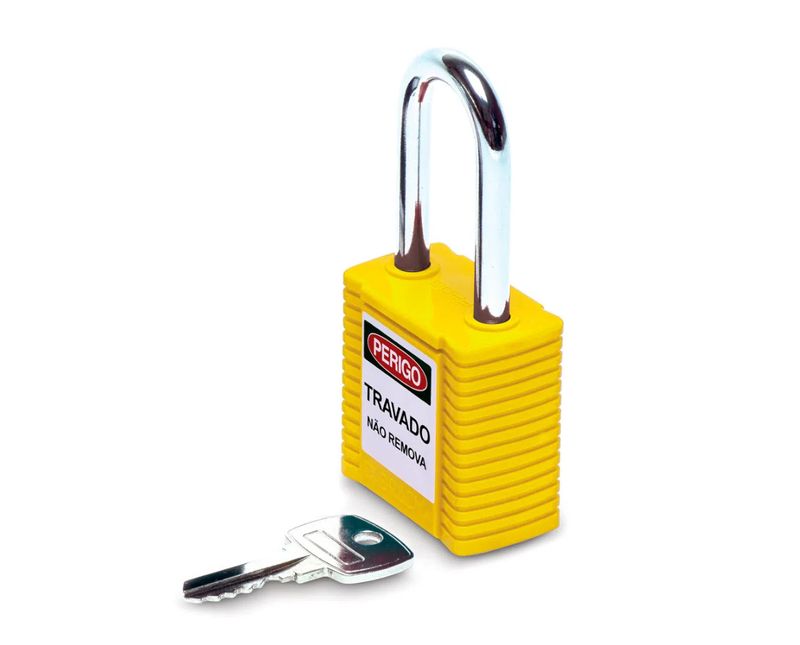 Com um corpo feito em plástico e haste em aço carbono, este cadeado oferece uma excelente resistência contra arrombamentos e cortes. A sua cor amarela permite uma fácil identificação em meio a outros objetos, ótimo para quem quer praticidade e rapidez no uso.