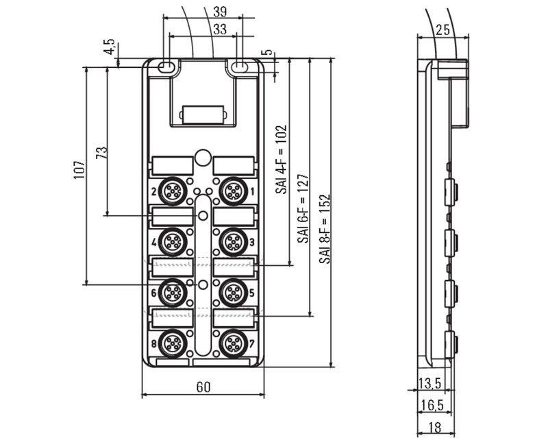 Com padrão de sensor M12, a caixa de distribuição pode ser facilmente conectada a uma ampla variedade de sensores, permitindo a expansão de sistemas de monitoramento de uma maneira muito mais prática. Além disso, a SAI8F4PPUR20M é equipada com indicadores de LED para facilitar a identificação do status de cada sensor.