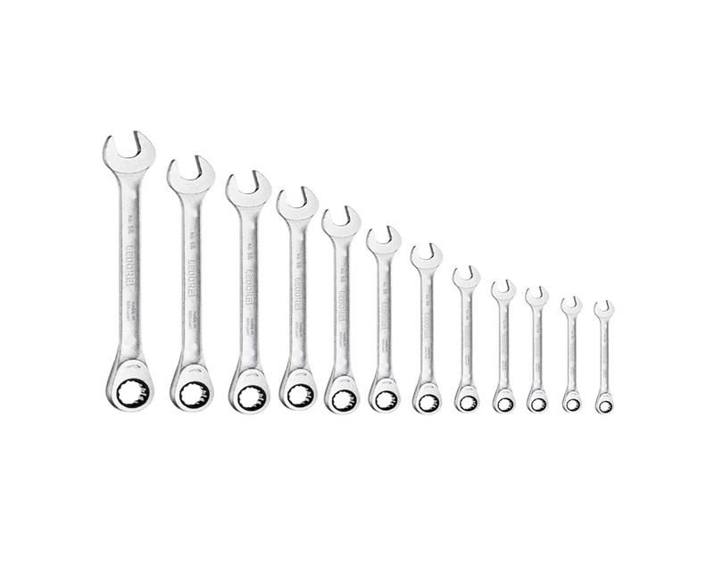 Cada chave combina um lado estriado com outro lado estriado e catraca reversível, oferecendo múltiplas opções para diferentes tipos de fixações, facilitando e agilizando suas atividades.