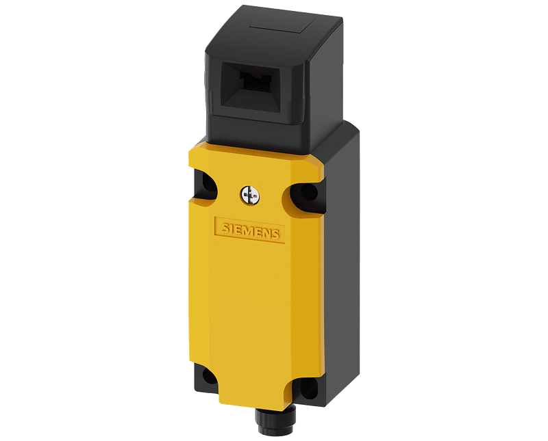 chave de posição de segurança com atuador separado carcaça metálica, 40 mm segundo DIN EN 50041 1NA/1NF contatos de arraste com conector de encaixe M12, de 5 polos, fixo ocupação do pino: pino1=21, pino2=22 pino3=13, pino4=14 pino5=PE 5 direções de arranque do adequado separado atuador 3SE5000-0AV0. Deve ser encomendado separadamente Interruptor de segurança mecânico SIRIUS 3SE5 para monitorização de posição de dispositivos de proteção móveis, p. ex. de portas, coberturas ou grades de proteção.As cabeças de acionamento com montagem sem parafusos podem ser rodadas 4x a 90 graus. São possíveis 5 sentidos de deslocação do atuador, dos quais um frontal. Os elementos de comutação garantem uma segurança de contacto muito elevada e só podem ser comutados com um atuador codificado em separado, que garante uma elevada proteção contra manipulação. Os LEDs indicam o estado atual do aparelho. Pontos de comutação e fixação segundo as normas EN 50047 e EN 50041. Os aparelhos dispõem de uma aprovação mundial (IEC, UL). Com a respetiva configuração do comutador é possível cumprir os mais elevados requisitos de segurança de acordo com a PL e ou SIL 3. O sistema eletrónico ASIsafe integrado necessita de um baixo consumo de corrente.Estão disponíveis diferentes tamanhos de caixa com diferentes elementos de comutação, em plástico ou metal. Está disponível uma vasta gama de atuadores com codificação 3D. Algumas variantes podem ser encomendadas opcionalmente com indicação do estado LED, conector M12 ou dispositivo de fecho. A série 3SF1 com ligação direta à interface AS do sistema de bus completa o portfólio.O atuador não faz parte do âmbito de fornecimento do interruptor de segurança e tem de ser encomendado à parte. Como acessórios, estão disponíveis conectores e outros acessórios de montagem/ligação.Safety is a SIRIUS business.