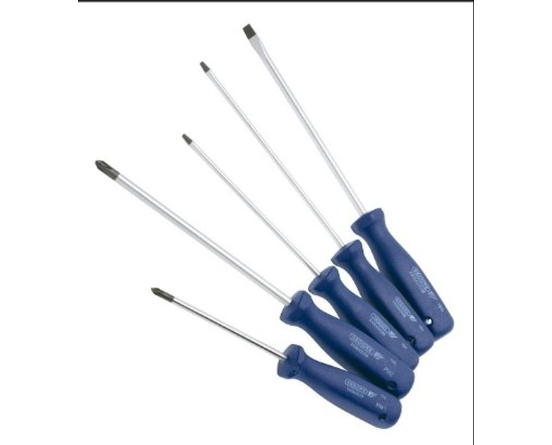 CHAVE FENDA JOGO | PONTAS: SIMPLES (FENDA)/CRUZADA (PHILLIPS) | COMPOSICAO: 5 PECAS | FORMATO: STANDARD | TIPO PONTA: FIXA | FORMA HASTE: REDONDA | MATERIAL: ACO CROMO-VANADIO | TRATAMENTO SUPERFICIAL: NIQUELADO/CROMADO/FOSFATIZADO | MATERIAL CABO: POLIPROPILENO | COR CABO: AZUL | ISOLACAO: COMUM | POSICIONADOR PARAFUSO: SEM POSICIONADOR | EMBALAGEM: CAIXA | TAMANHO: 4,5-6MM | MARCA: GEDORE | REF: 150160S1