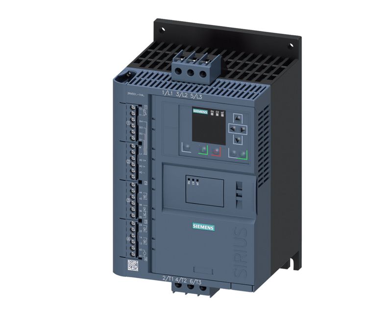CHAVE PARTIDA SUAVE MOTORES | NUMERO FASES: TRIFASICO | GRAU PROTECAO: IP-00 | TENSAO ALIMENTACAO: 200-480V | FREQUENCIA: 50/60 HZ | CORRENTE NOMINAL: 25A | TENSAO CONTROLE: 110-220V | POTENCIA MAXIMA MOTOR: 11KW | MODELO: SIRIUS | MARCA: SIEMENS | REFERENCIA: 3RW55151HA14