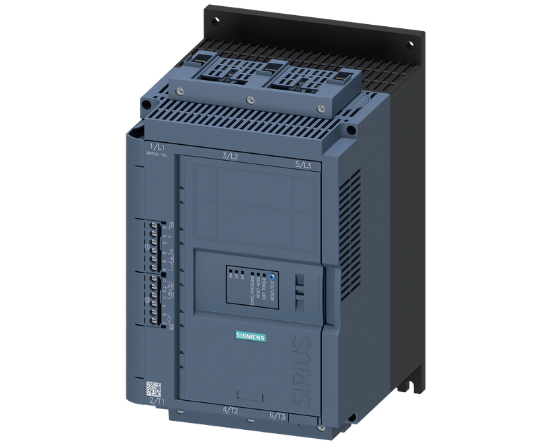 CHAVE PARTIDA SUAVE MOTORES | NUMERO FASES: TRIFASICO | GRAU PROTECAO: IP-00 | TENSAO ALIMENTACAO: 200-600V | FREQUENCIA: 50/60 HZ | CORRENTE NOMINAL: 47A | TENSAO CONTROLE: 110-220V | POTENCIA MAXIMA MOTOR: 22KW | MODELO: SIRIUS | MARCA: SIEMENS | REFERENCIA: 3RW52241AC15