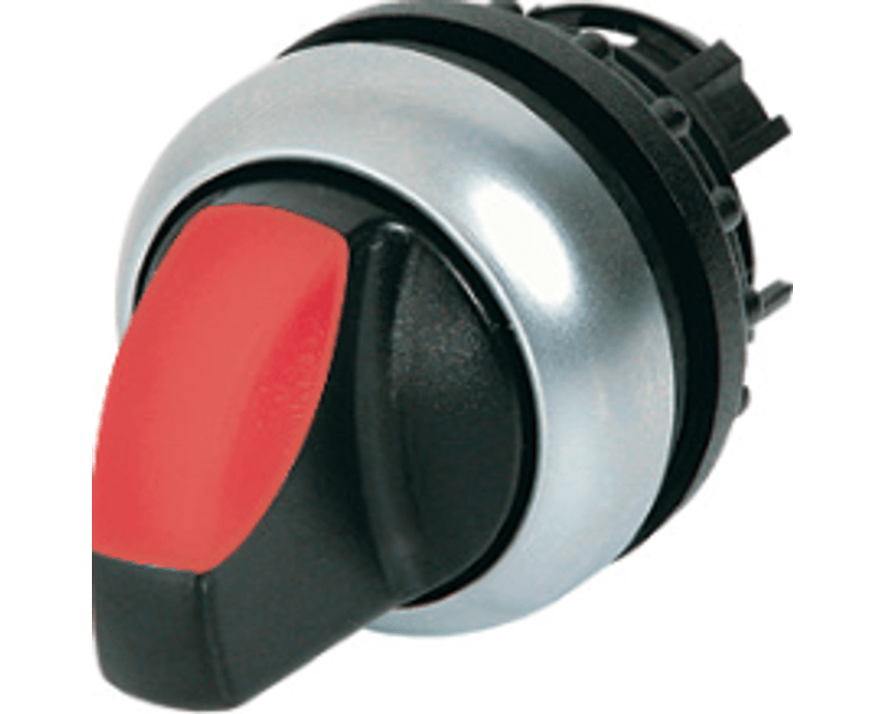 COMUTADOR COMANDO | TIPO: ILUMINADO | FORMATO: KNOB CURTO | POSICOES: 3 POSICOES | FRONTAL: PLASTICO | COR: VERMELHA | FURACAO: 22MM | ANGULO OPERACAO: 60 GRAUS | CONTATOS: SEM CONTATOS | MARCA: EATON | REFERENCIA: M22WRLK3R