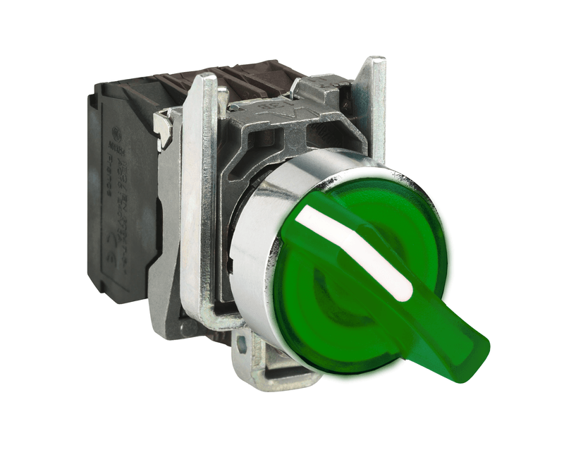 Material elétricoBotãoComutador Iluminado Knob Curto 3 Posições Verde 22mm 1NA+1NF XB4BK133B5 Schneider