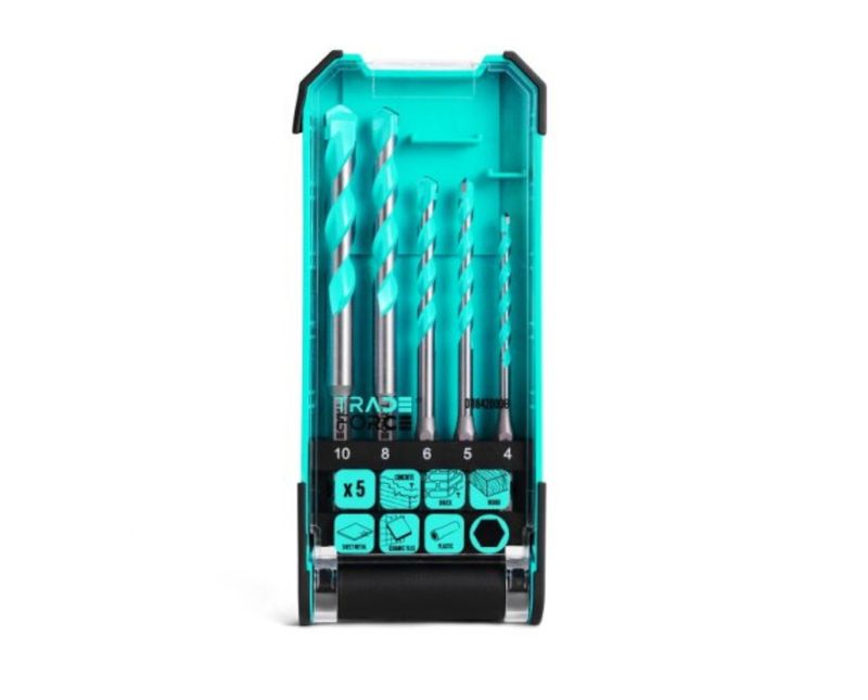 O "Conjunto de Brocas de Impacto 5 Peças Multiuso 0118420008" da marca TradeForce é uma ferramenta versátil projetada para perfurar diversos tipos de materiais com impacto, oferecendo eficiência e durabilidade. Aqui estão alguns pontos relevantes sobre esse conjunto de brocas: