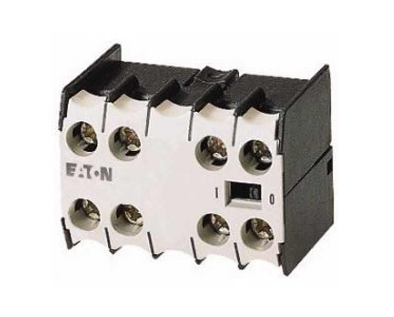 O contato auxiliar 11DILE da marca Eaton é um produto específico para uso em dispositivos DILM. Possui um design frontal e é composto por 1NA (normalmente aberto) e 1NF (normalmente fechado).