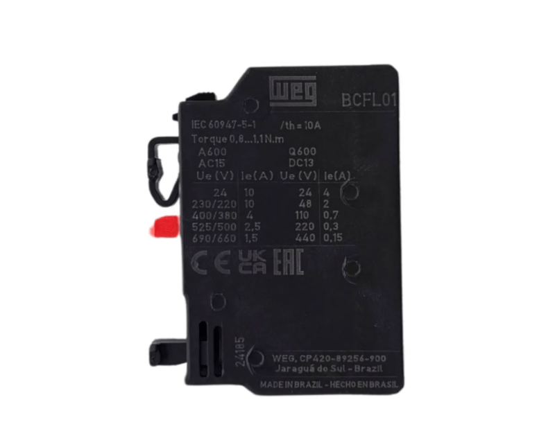 CONTATO AUXILIAR | CONTATOS: 1NF | TIPO: FRONTAL | APLICACAO: P/CONTATOR | MARCA: WEG| REF: BCFL01