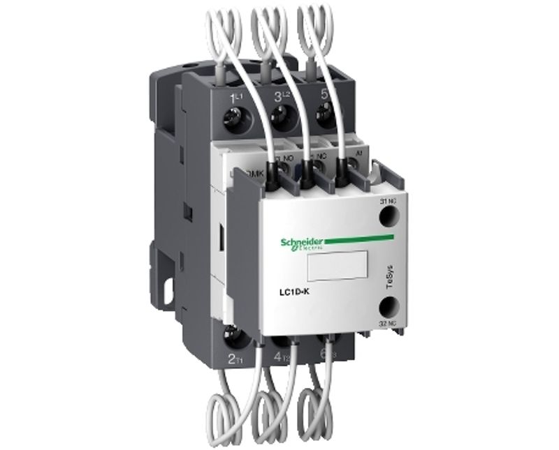 Contator LC1DMKM7 para comutação de bancos de capacitores trifásicos, utilizados para correção do fator de potência. Conexão direta, 25kVAR em 400/415V, 50/60Hz e bobina do circuito de comando de 220V. Vem com 1NA + 2NF para circuito de sinalização. Esses dispositivos estão em conformidade com as normas IEC 60070 e 60831, UL e CSA.