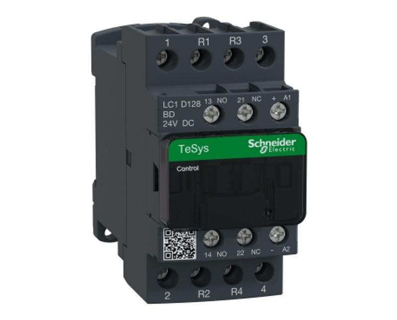 O LC1D128BD é um contator TeSys D de 4 polos da Schneider Electric para aplicações de cargas resistivas. Vem com uma bobina de 24V em corrente contínua CC e contatos auxiliares embutidos 1NA + 1NF. Ele pode ser utilizado em aplicações de segurança graças ao seu contato de espelho NF certificado. Montagem compacta em trilho DIN, que garante alta confiabilidade e durabilidade. Disponível em todo o mundo, é certificado para vários padrões (IEC, UL, CSA, CCC, EAC, Marine) e compatível com Green Premium (RoHs / Reach).