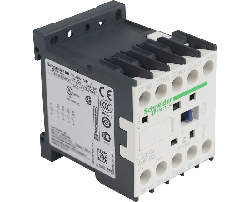 CONTATOR AUXILIAR | TENSAO BOBINA: 24 VCC | CONTATOS AUXILIARES: 4NA | MARCA: SCHNEIDER | REFERENCIA: CA4KN40BW3