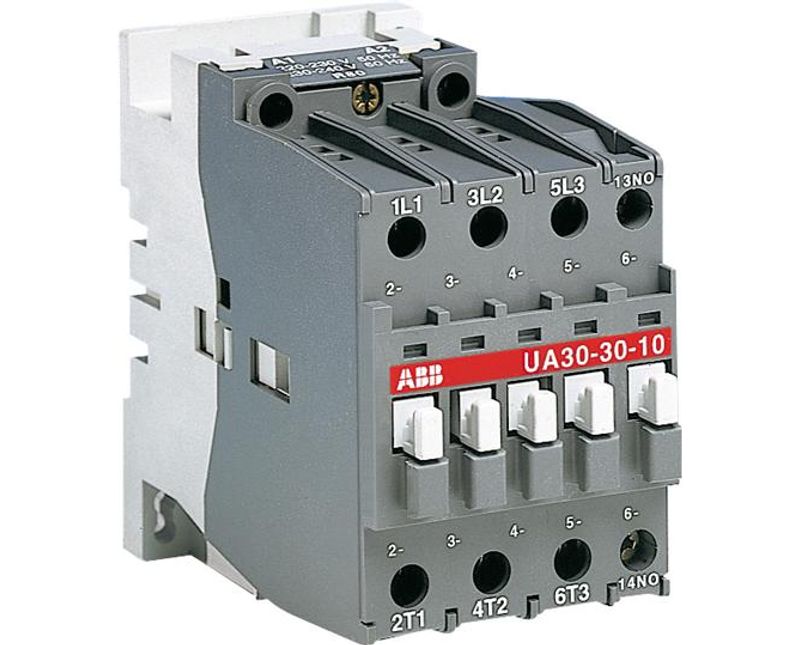 Os contatores de três polos UA são projetados para chaveamento de bancos de capacitores de até 90kvar em 690Vca onde devem ser usados ??para comutação de bancos de capacitores cujos picos de corrente de irrupção sejam menores ou iguais a 100 vezes a corrente nominal de rms. Os capacitores devem ser descarregados (tensão residual máxima nos terminais ? 50 V) antes de serem energizados novamente quando os contatores estiverem fazendo. Nessas condições, a durabilidade elétrica dos contatores é igual a 100.000 ciclos de operação. Os contatores UA compartilham os mesmos acessórios e peças de reposição da linha A(F) de mesmo tamanho elétrico.