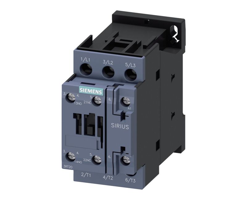 Contator de potência SIRIUS 3RT2 para comutação de motores. Os contatores 3RT2 fazem parte do sistema modular SIRIUS com seus produtos coordenados de maneira ideal. Eles oferecem desempenho convincente a partir de um design compacto com alta confiabilidade de contato. Eles podem ser combinados com uma variedade de outros componentes no alimentador de carga. Muitas das combinações de dispositivos foram testadas na fábrica.