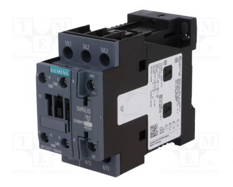 CONTATOR POTENCIA | NUMERO POLOS: TRIPOLAR | CORRENTE COMUTACAO: AC3 | CORRENTE: 32A | TENSAO BOBINA: 24 VCC | CONTATOS: 1NA+1NF| REF: 3RT20271BB40