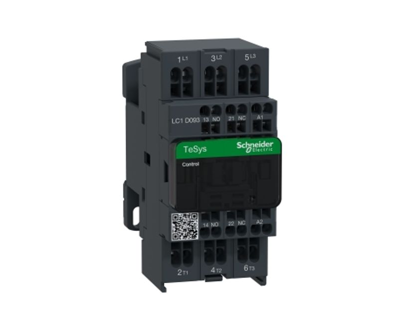 O LC1D093M7 é um contator TeSys D de 3 polos da Schneider Electric para aplicações de motores elétricos de até 4kW de potência a 380V, bobina de 220V CA, terminal com conexão por mola e contatos auxiliares 1NA + 1NF. Vem com 1NA + 1NF embutidos. Ele pode ser usado em aplicações de segurança graças ao seu contato de espelho NF certificado. Montagem compacta em trilho DIN, que garante alta confiabilidade e durabilidade. Disponível em todo o mundo, é certificado para vários padrões (IEC, UL, CSA, CCC, EAC, Marine) e compatível com Green Premium (RoHs / Reach).