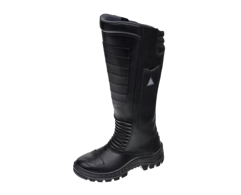 O coturno moto é um tipo de calçado projetado especialmente para motociclistas. Ele possui características que o tornam ideal para uso em motocicletas, incluindo solado antiderrapante, proteção para os pés, material resistente e costura reforçada. O objetivo principal do coturno moto é oferecer segurança e conforto ao motociclista durante suas viagens, ajudando a proteger os pés de possíveis lesões e melhorando a aderência ao controle da motocicleta. Além disso, ele também pode ser utilizado como calçado para atividades off-road e para esportes de aventura. Couro hidrofugado Zíper com protetor de couro e velcro Porta-faca Refletivos (lateral e taloneira) Biqueira de polipropileno ou aço Solado PU Borracha New Prime Resistente a altas temperaturas