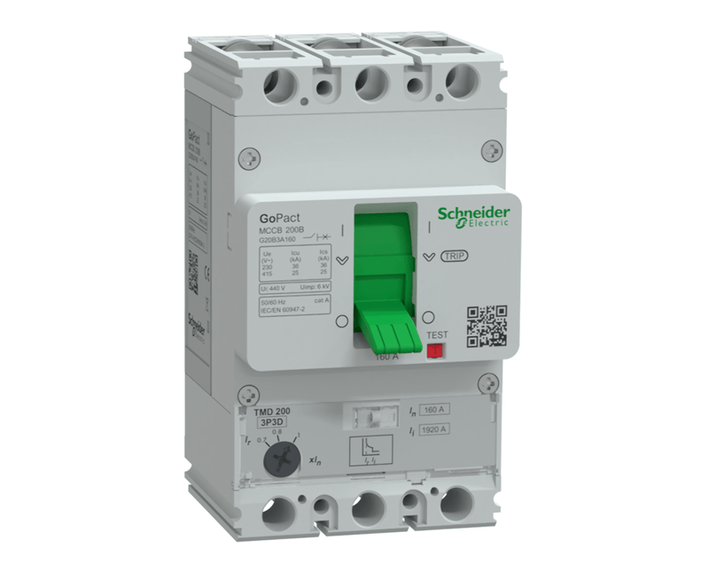 Material elétricoDisjuntorDisjuntor Caixa Moldada GoPact Tripolar Ajustável 200B 25KA 160A G20B3A160 Schneider