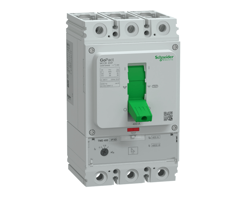 DISJUNTOR CAIXA MOLDADA | NUMERO POLOS: TRIPOLAR | BASE: AJUSTAVEL | ELEMENTO PROTECAO: TERMICO / MAGNETICO FIXOS (TERMOMAGNETICO) | ACIONAMENTO: ALAVANCA | TENSAO NOMINAL: 415V | CORRENTE NOMINAL: 400A | CORRENTE DISPARO: 400A | FREQUENCIA: 50/60HZ | CAPACIDADE RUPTURA (ICU): 36 KA | CONEXAO: TERMINAL PARAFUSO | CLASSIFICACAO / GRAU PROTECAO: IP-20 | MODELO: G40 | MARCA: SCHNEIDER | REF: G40F3A400