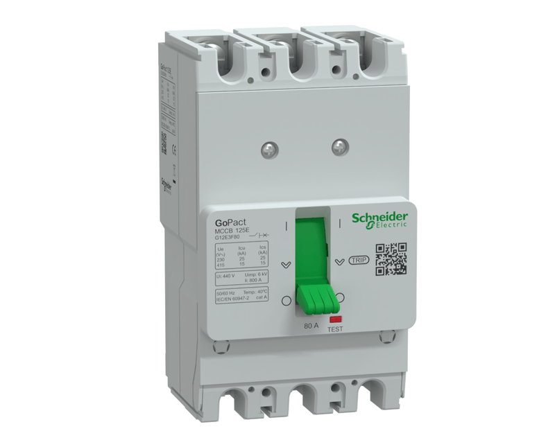 Material elétricoDisjuntorDisjuntor caixa moldada GoPact Tripolar Fixo 125A 15KA 80A G12E3F80 Schneider