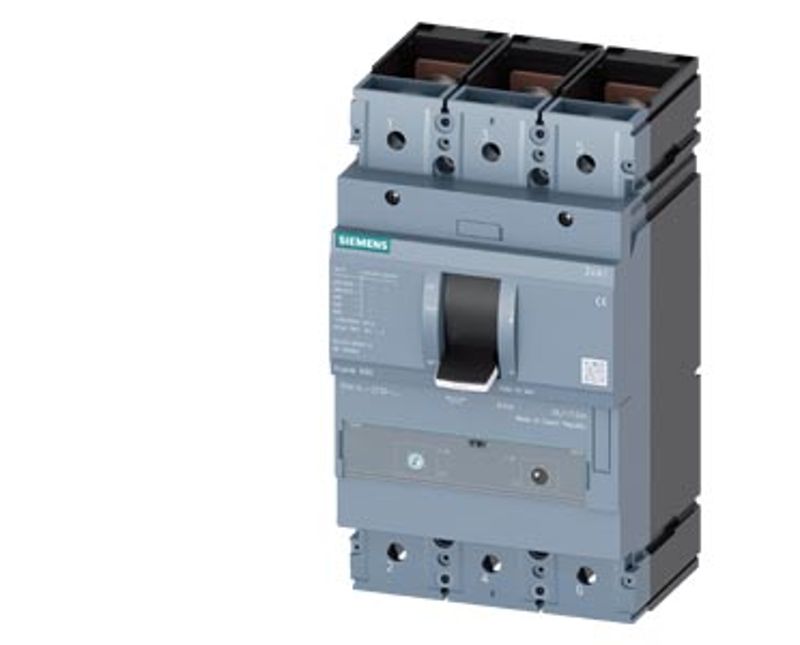 DISJUNTOR CAIXA MOLDADA | NUMERO POLOS: TRIPOLAR | BASE: FIXA | ELEMENTO PROTECAO: TERMICO / MAGNETICO (TERMOMAGNETICO) | ACIONAMENTO: ALAVANCA/MANOPLA | TENSAO NOMINAL: 415V | CORRENTE NOMINAL: 630A | FREQUENCIA: 50/60HZ | CAPACIDADE RUPTURA (ICU): 70KA | CONEXAO: TERMINAL FRONTAL | GRAU PROTECAO: IP-40 | MODELO: 3VA | MARCA: SIEMENS | REFERENCIA: 3VA14636EF320AA0