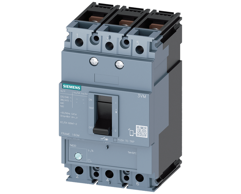 Esse disjuntor é do tipo Caixa Moldada e apresenta três polos, sendo assim, é indicado para uso em sistemas elétricos que exigem um alto grau de proteção, como em instalações industriais e comerciais. O modelo 3VM11803EE320AA0 possui uma corrente nominal de 80A e frequência de 50/60Hz, sendo compatível com sistemas elétricos que seguem essas especificações.