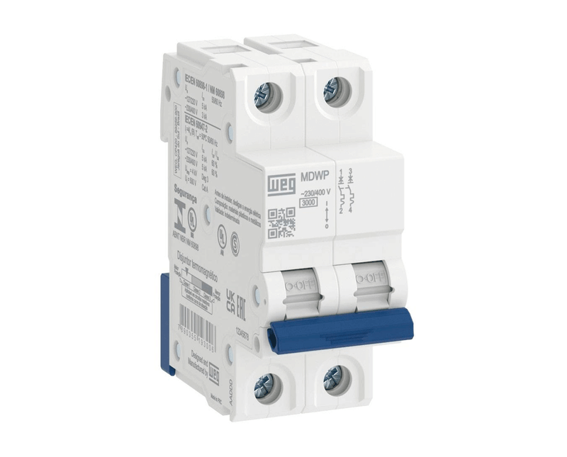Conheça o Disjuntor Mini da WEG, uma solução ideal para sua instalação elétrica. Com montagem em trilho DIN e um design compacto, este disjuntor termomagnético bipolar suporta correntes de até 40A, sendo perfeito para proteger seus circuitos em tensões de 220/400V. Sua curva C oferece uma resposta eficiente contra sobrecargas e curtos-circuitos, enquanto a classificação de proteção IP-20 garante segurança e durabilidade. Com capacidade de ruptura de 5KA, o modelo MDWP é a escolha certa para quem busca qualidade e confiabilidade em elétrica.
