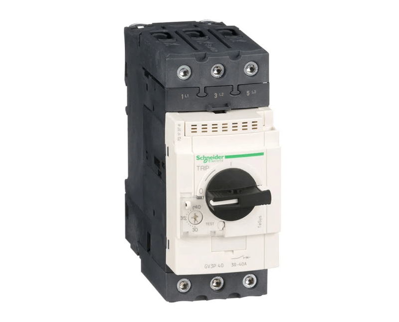 O disjuntor de motor 3 polos Schneider, é um disjuntor termomagnético especialmente projetado para o controle e proteção de motores de acordo com as normas IEC 60947-2 e IEC 60947-4-1. O disjuntor do motor GV3 fornece proteção automática contra curtos-circuitos e sobrecargas usando elementos termomagnéticos. A proteção contra sobrecarga tem compensação automática para flutuações de temperatura ambiente. A carcaça externa do disjuntor fornece proteção contra contato direto dos dedos com partes vivas. A corrente nominal do motor é exibida/definida no botão de passo (trimpot). A instalação pode ser feita em qualquer posição, em trilho DIN 35 mm, utilizando parafusos ou presilhas. A energia pode ser controlada manualmente, usando um botão rotativo com um soquete para uma trava de segurança de cadeado. Os bornes são do tipo parafuso com a exclusiva tecnologia Ever Link®, que compensa dilatações e deformações dos condutores, proporciona torque de alta qualidade para aperto permanente. Cada terminal permite a conexão de dois conectores independentes.