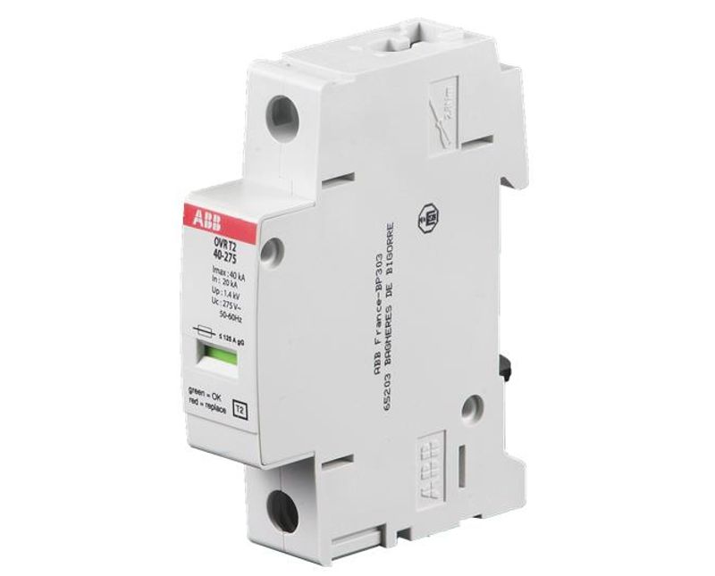 DISPOSITIVO PROTECAO CONTRA SURTO (DPS) | CLASSE TENSAO: CLASSE II | NUMERO POLOS: MONOPOLAR | TENSAO NOMINAL: 275 V | TENSAO MAXIMA OPERACAO: 230 VCA | CAPACIDADE RUPTURA: 40 KA | COR: BRANCA | MARCA: ABB| REF: OVRT240275