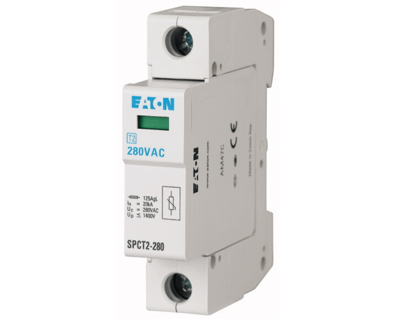 DISPOSITIVO PROTECAO CONTRA SURTO (DPS) | CLASSE TENSAO: CLASSE 2 | NUMERO POLOS: 1 POLO | TENSAO NOMINAL: 460V | CAPACIDADE RUPTURA: 20KA | GRAU PROTECAO: IP-20 | COR: BRANCA | MARCA: EATON | REFERENCIA: SPCT24601