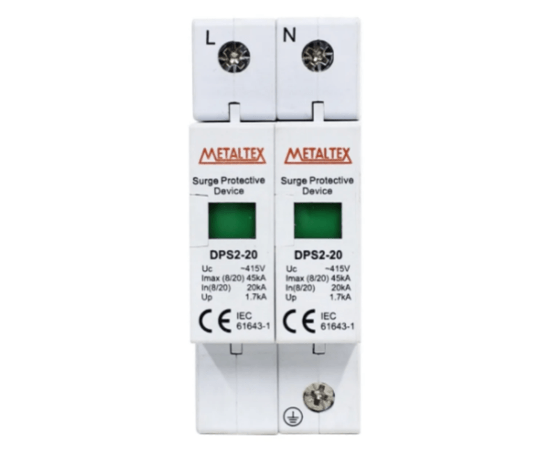 Proteja seus equipamentos eletrônicos e evite surtos com o DPS CLII 2P 400V 20KA DPS2202 da METALTEX.