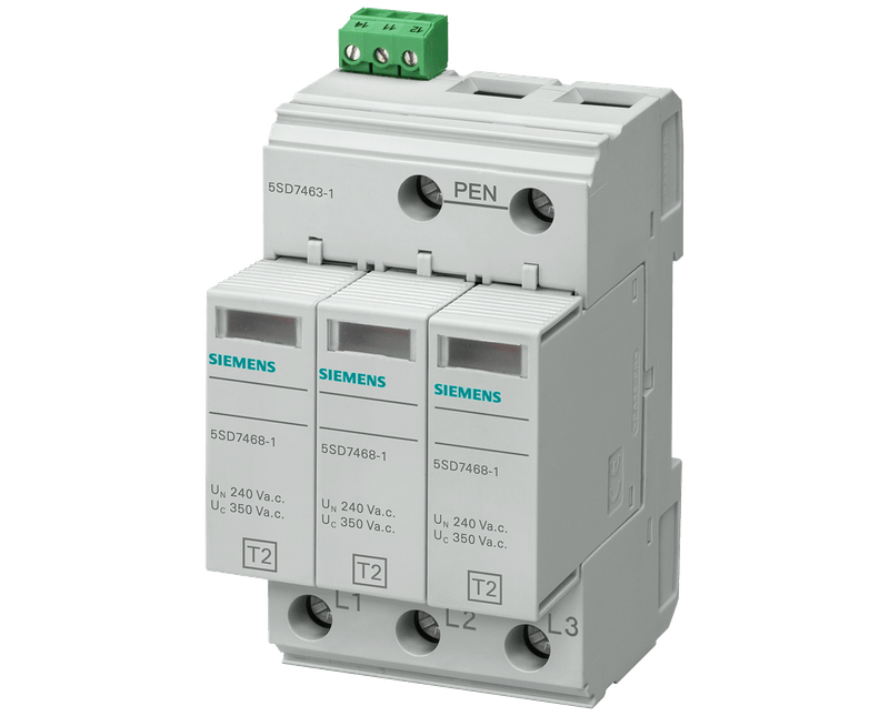 DISPOSITIVO PROTECAO CONTRA SURTO (DPS) | CLASSE TENSAO: CLASSE II | NUMERO POLOS: 3 POLOS | TENSAO NOMINAL: 350 VCA | TENSAO MAXIMA OPERACAO: 350 VCA | CAPACIDADE RUPTURA: 20 KA | MARCA: SIEMENS | REFERENCIA: 5SD74631