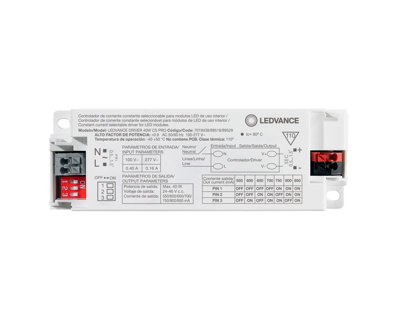 DRIVER LED | POTENCIA NOMINAL: 40W | TENSAO ALIMENTACAO: 100-277V | CLASSIFICACAO / GRAU PROTECAO: IP-20 | MODELO: CC PRO | MARCA: LEDVANCE | REF: 7019438
