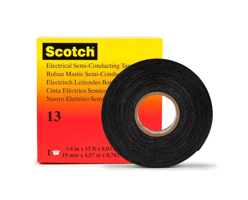 A Fita Elétrica Semicondutora 3M Scotch 13 não vulcaniza e é estável para armazenamento. A sua condutividade não é afetada, exceto por óleos de baixa viscosidade. Mantém a condutividade estável dentro de um grande intervalo de temperaturas e não afeta a condutividade dos invólucros semicondutores dos cabos. Esta fita é utilizada para ligações de alta tensão e fornece continuação de blindagem dos cabos.